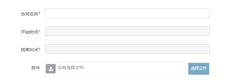 - 【添加合同】,填写合同的名称、合同开始时间及结束时间,这三项为必填项。如有合同的电子版也可上传文件。如下图所示: