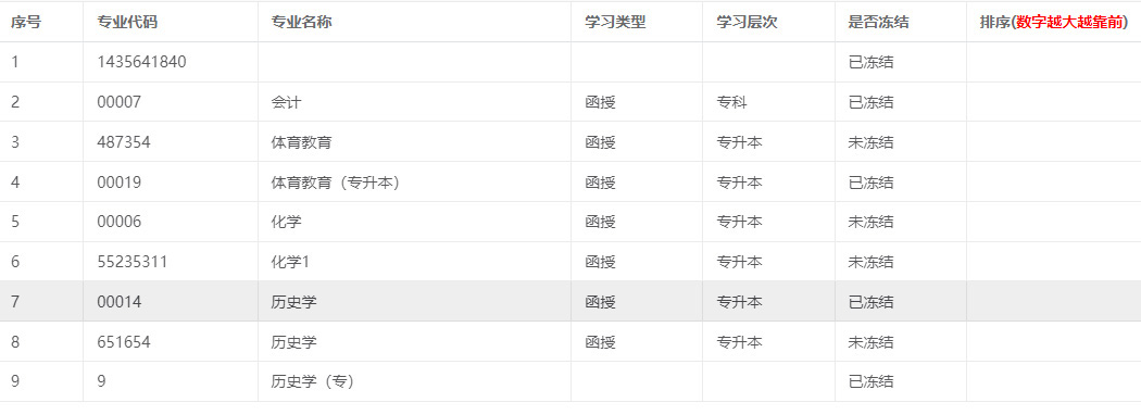 - 点击【开通专业】的数值,将显示该教学点下的所有专业,如下图所示: