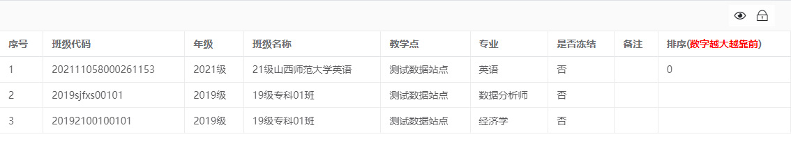 - 点击【下属班级】的数值,将显示该教学点下的所有班级,如下图所示: