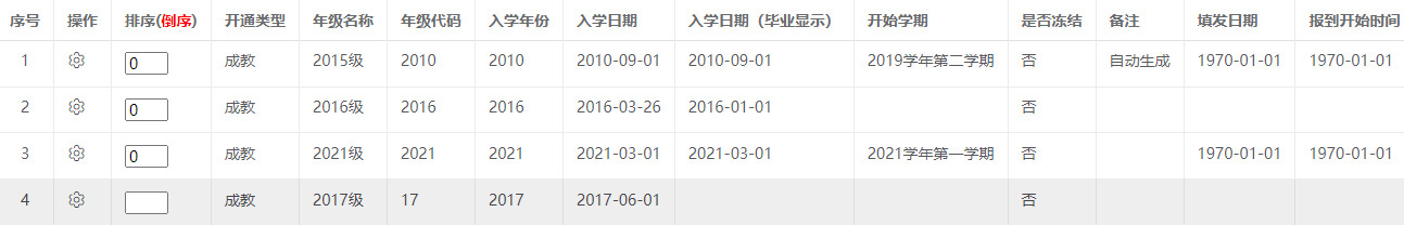 您可对年级进行增删改的操作,设置入学日期,相关毕业判断。