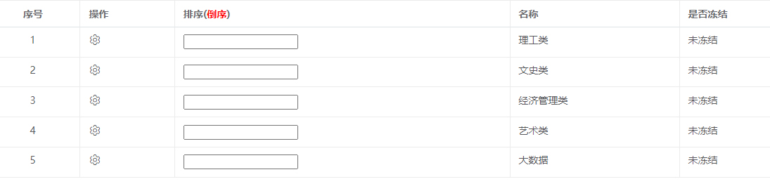 是否冻结:冻结,后续对该专业类别无法进行操作。