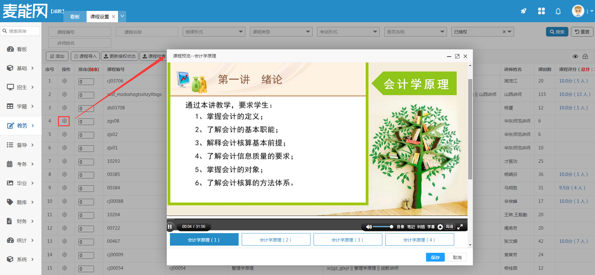 录播课程读取后可进行课程预览操作