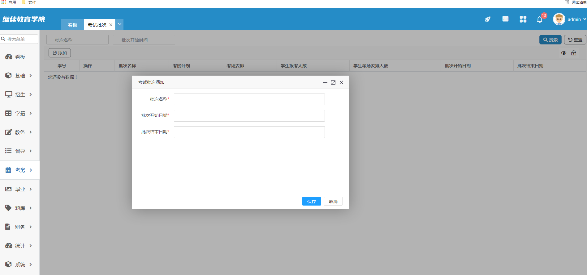 点击添加、添加批次名称、批次开始日期、批次结束日期