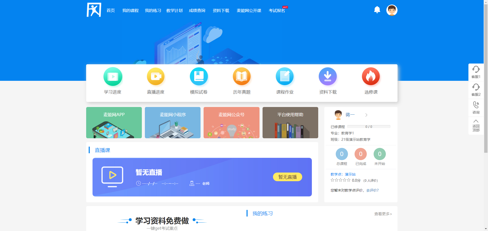 在操作项点击模拟登录,可以登录该学生的学习账号。